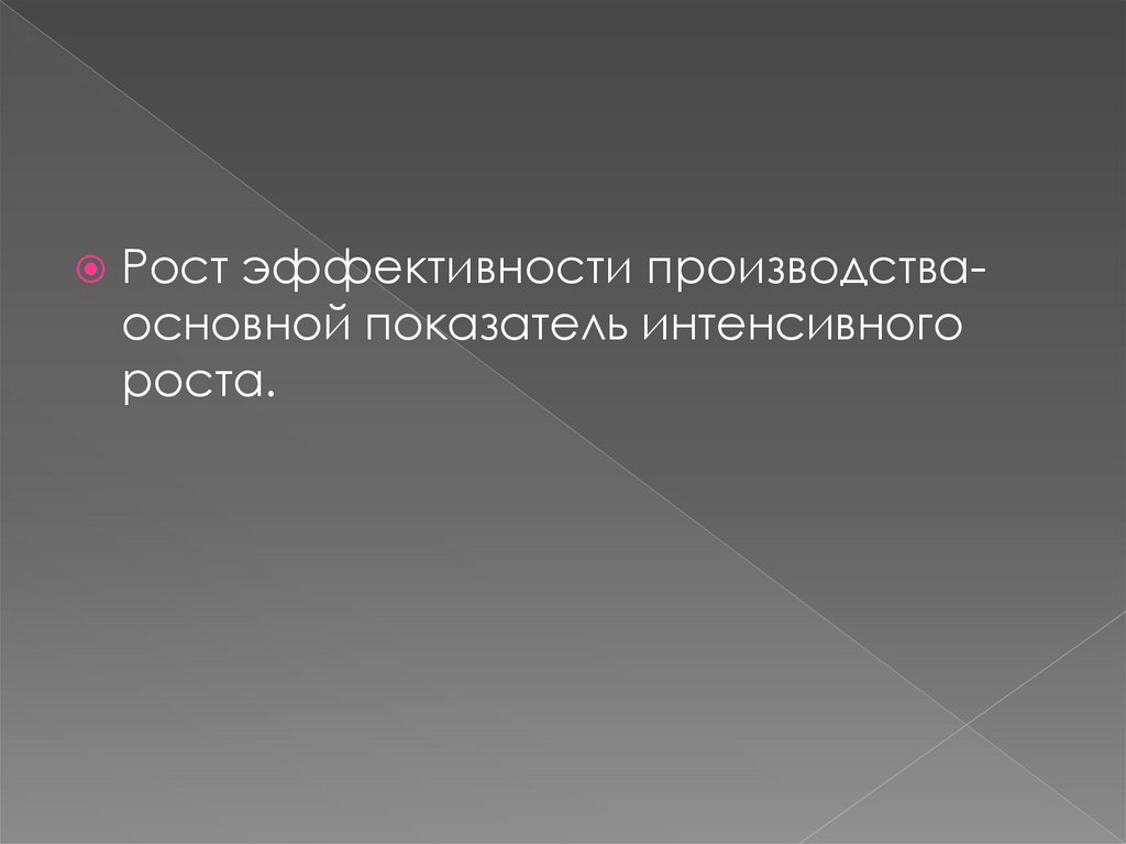 Рост эффективности производстваосновной показатель интенсивногороста.