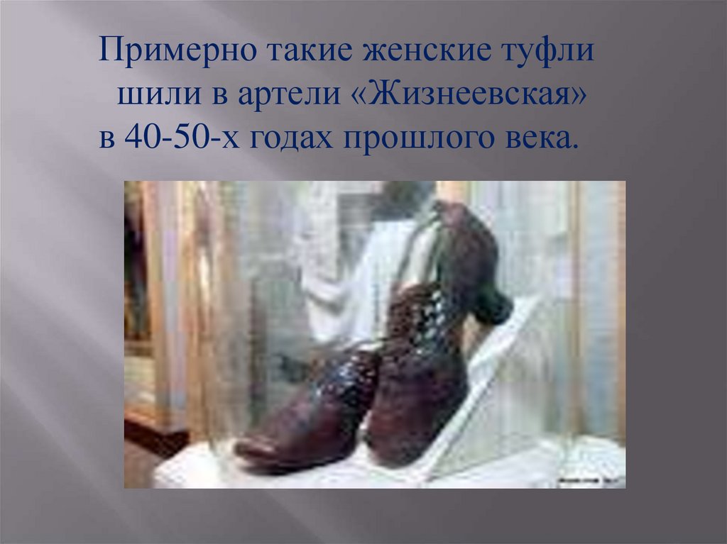 Примерно такие женские туфлишили в артели «Жизнеевская»