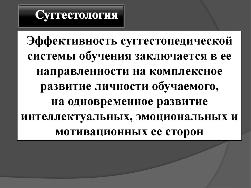 Эффективность суггестопедическойсистемы обучения заключается в ее