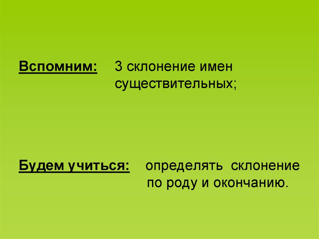 • Какое склонение имен существительныхмы сегодня вспомнили?
