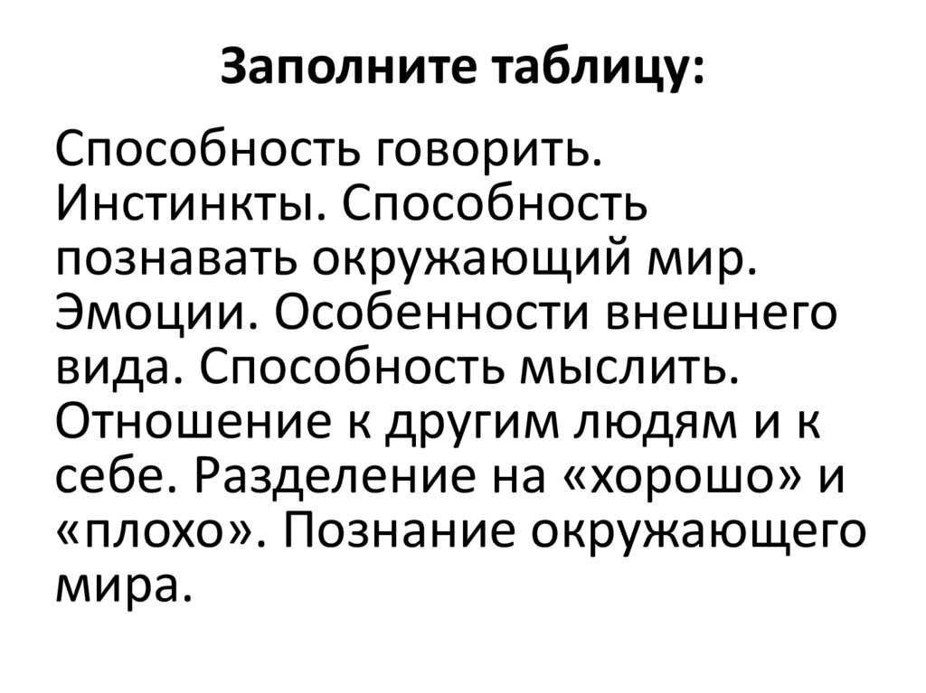 Заполните таблицу:Способность говорить.