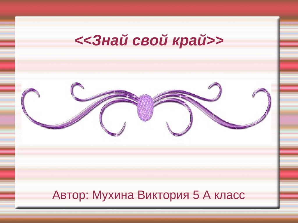 <<Знай свой край>>Автор: Мухина Виктория 5 А класс