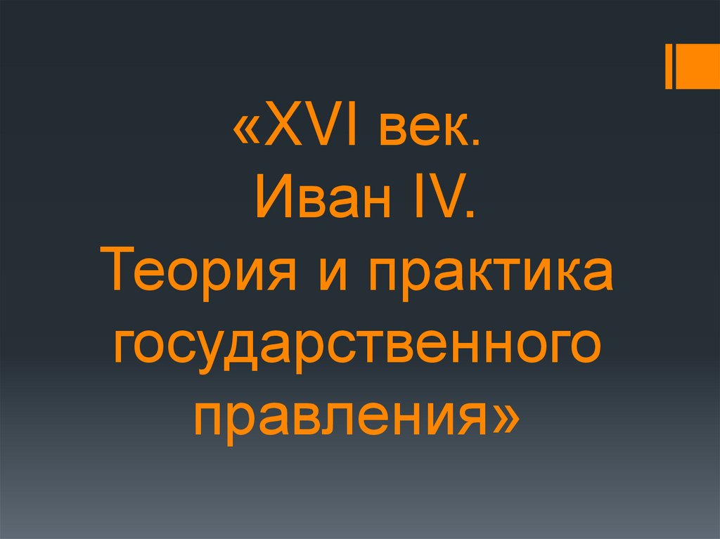 1. «XVI век. Иван IV. Теория и практика государственного правления»