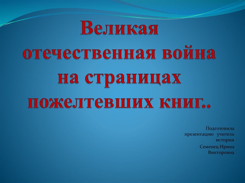 Великая Отечественная война 1941-1945 годов, на страницах пожелтевших книг