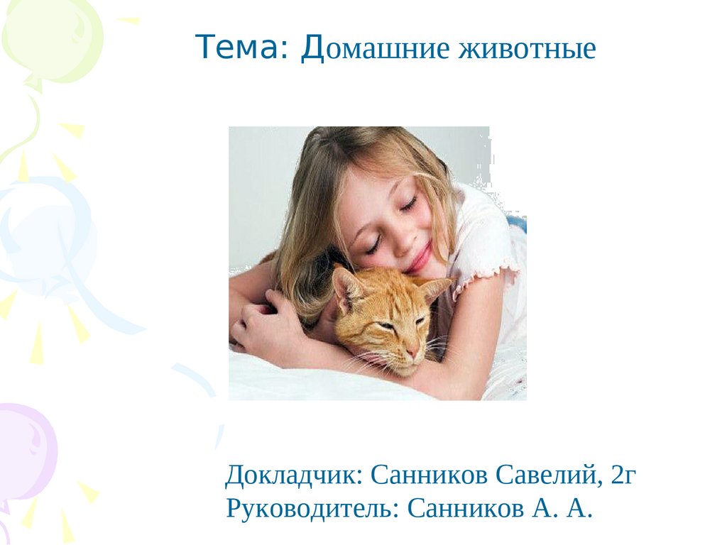 Тема: Домашние животныеДокладчик: Санников Савелий, 2г