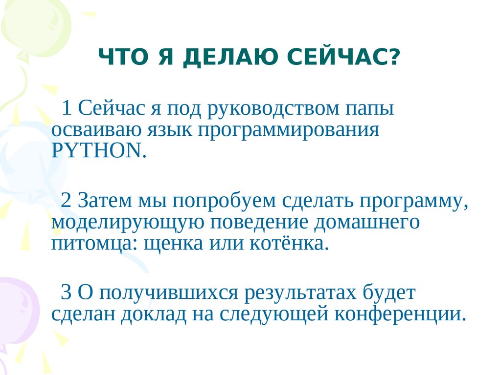 ЧТО Я ДЕЛАЮ СЕЙЧАС?1 Сейчас я под руководством папы