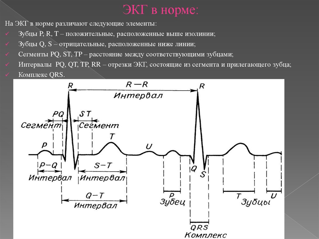 ЭКГ в норме:На ЭКГ в норме различают следующие элементы: