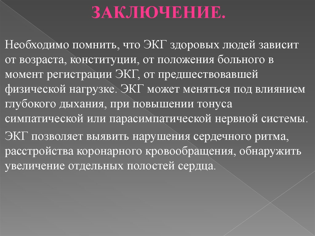 ЗАКЛЮЧЕНИЕ.Необходимо помнить, что ЭКГ здоровых людей зависит