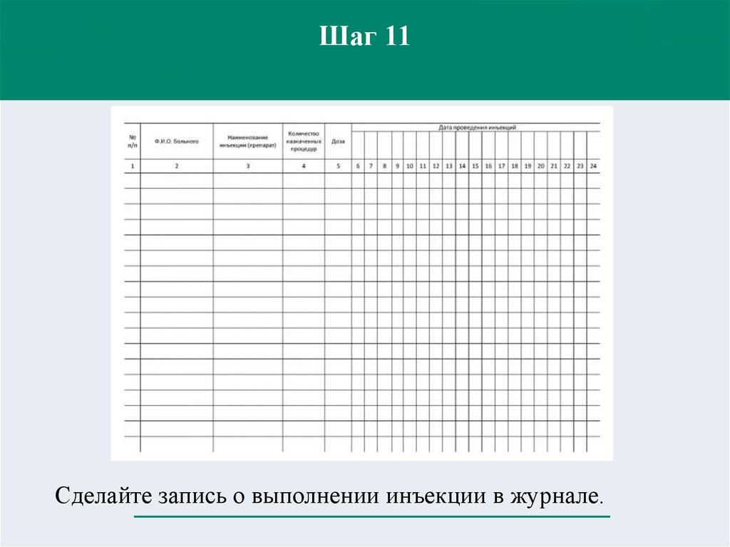 Шаг 11Сделайте запись о выполнении инъекции в журнале.