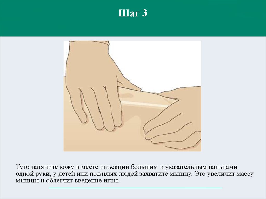 Шаг 3Туго натяните кожу в месте инъекции большим и указательным пальцами