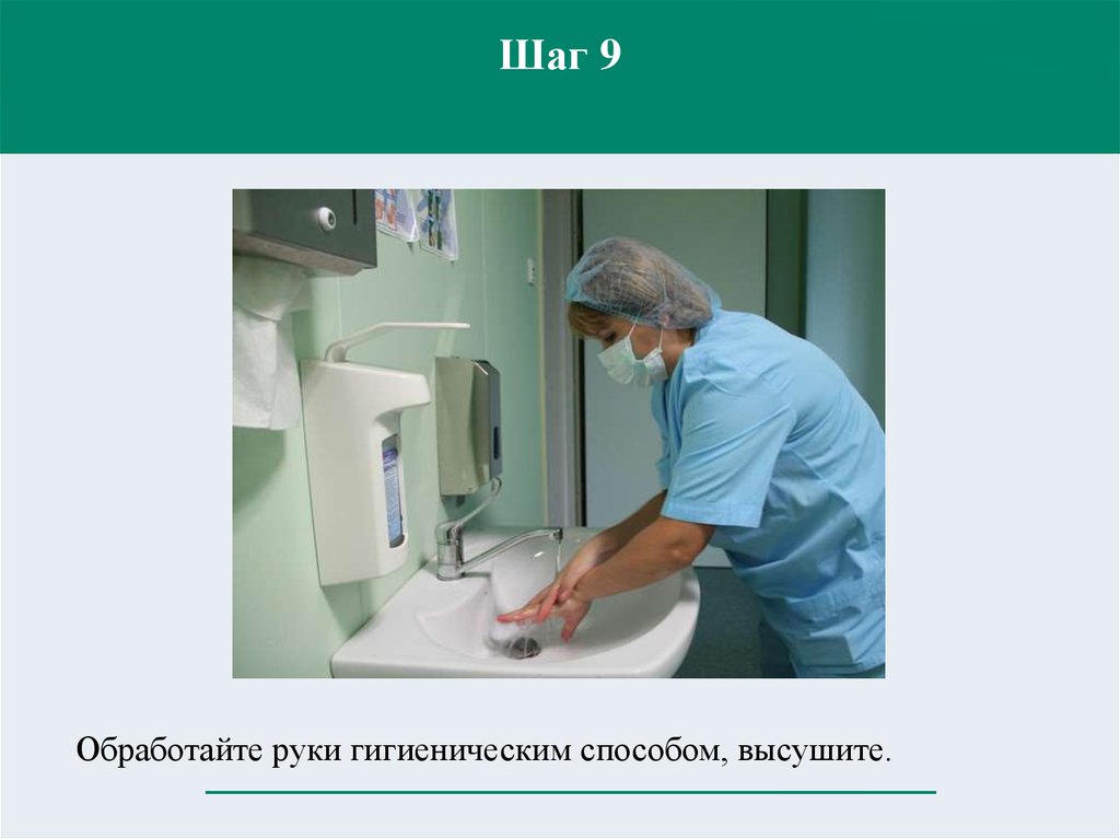 Шаг 9Обработайте руки гигиеническим способом, высушите.