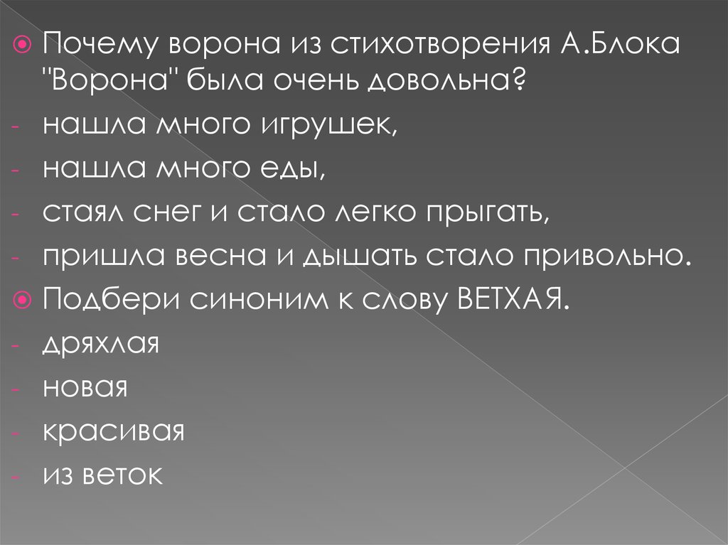 Почему ворона из стихотворения А.Блока"Ворона" была очень довольна?