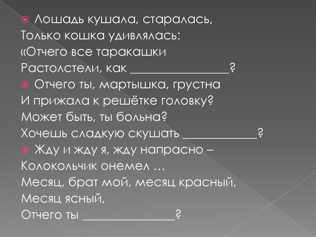 Лошадь кушала, старалась,Только кошка удивлялась: