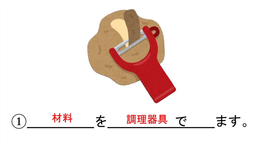 ②材料(ざいりょう)を (大きさ・形) に 切る