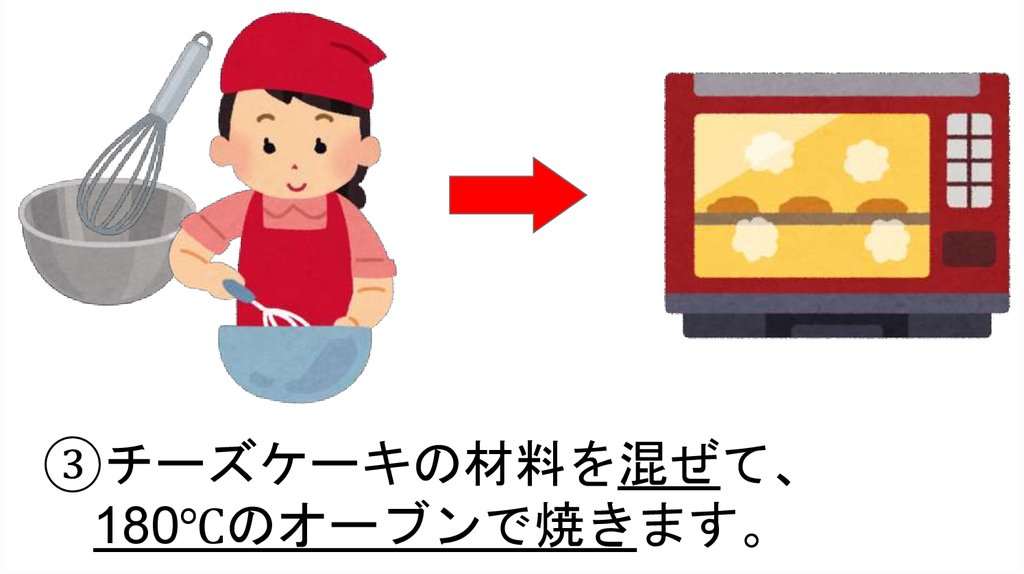 ③チーズケーキの材料を V てform 、180℃の 調理器具 で