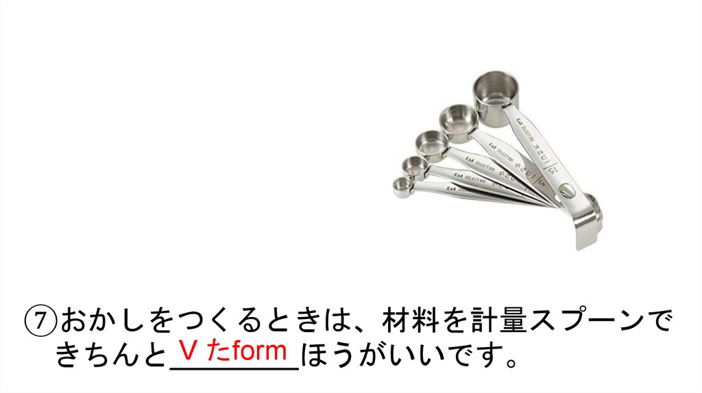 ⑦おかしをつくるときは、材料を計量スプーンできちんと V たform ほうがいいです。