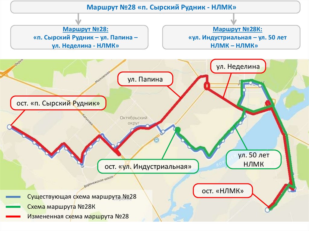 Маршрут №28 «п. Сырский Рудник - НЛМК»Маршрут №28: