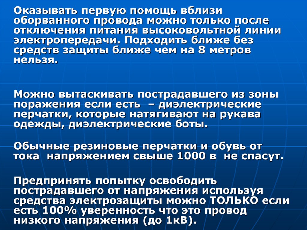 Оказывать первую помощь вблизиоборванного провода можно только после