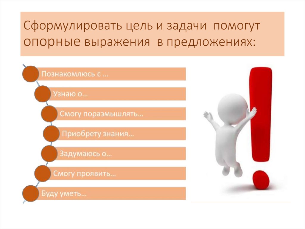 Сформулировать цель и задачи помогутопорные выражения в предложениях: