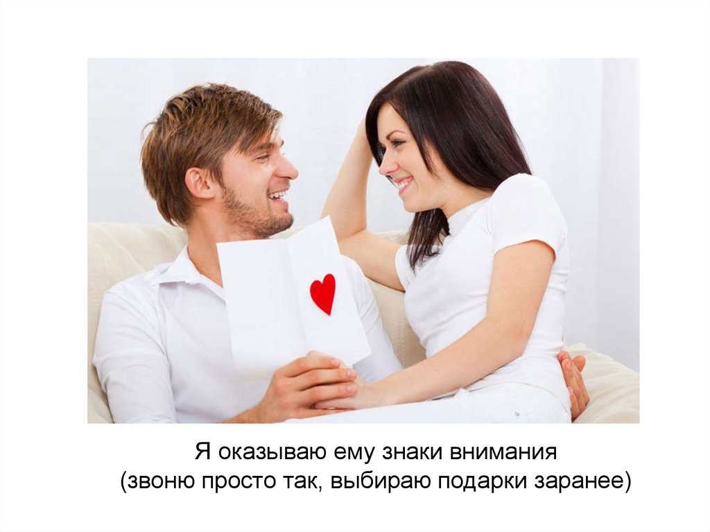 Я оказываю ему знаки внимания(звоню просто так, выбираю подарки заранее)