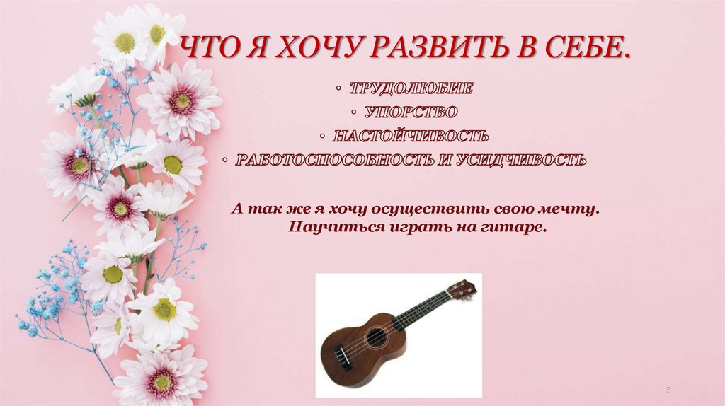 ЧТО Я ХОЧУ РАЗВИТЬ В СЕБЕ.А так же я хочу осуществить свою мечту.