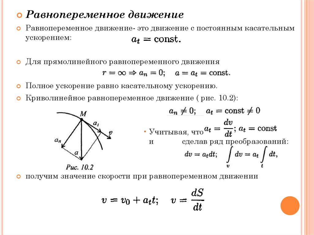 Криволинейное равнопеременное движение ( рис. 10.2):