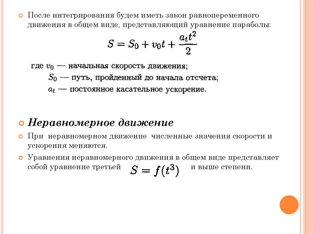 После интегрирования будем иметь закон равнопеременногодвижения в общем виде, представляющий уравнение параболы:
