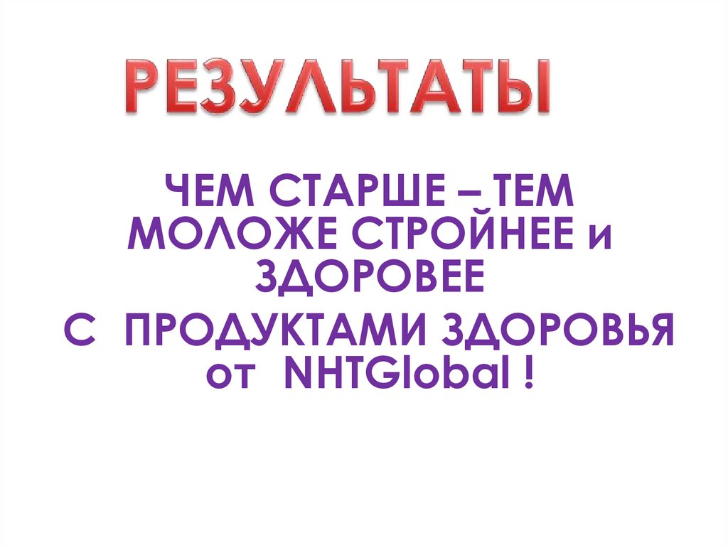 Результаты использования продуктов NHT Global