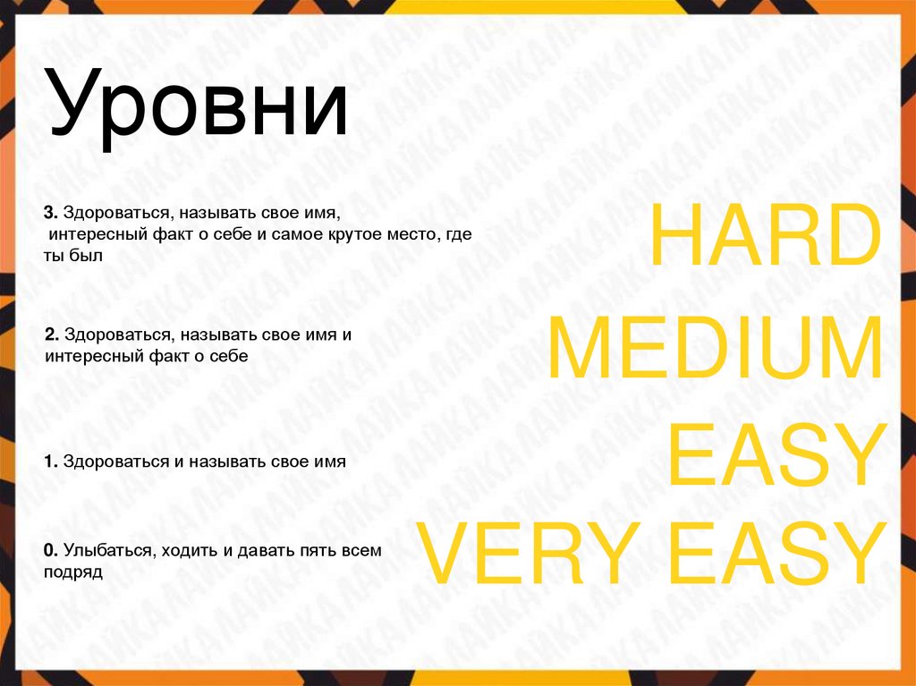 Уровни3. Здороваться, называть свое имя,