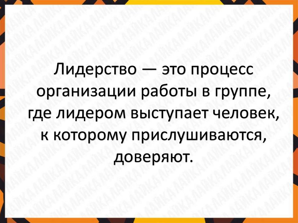 Лидерство — это процессорганизации работы в группе,