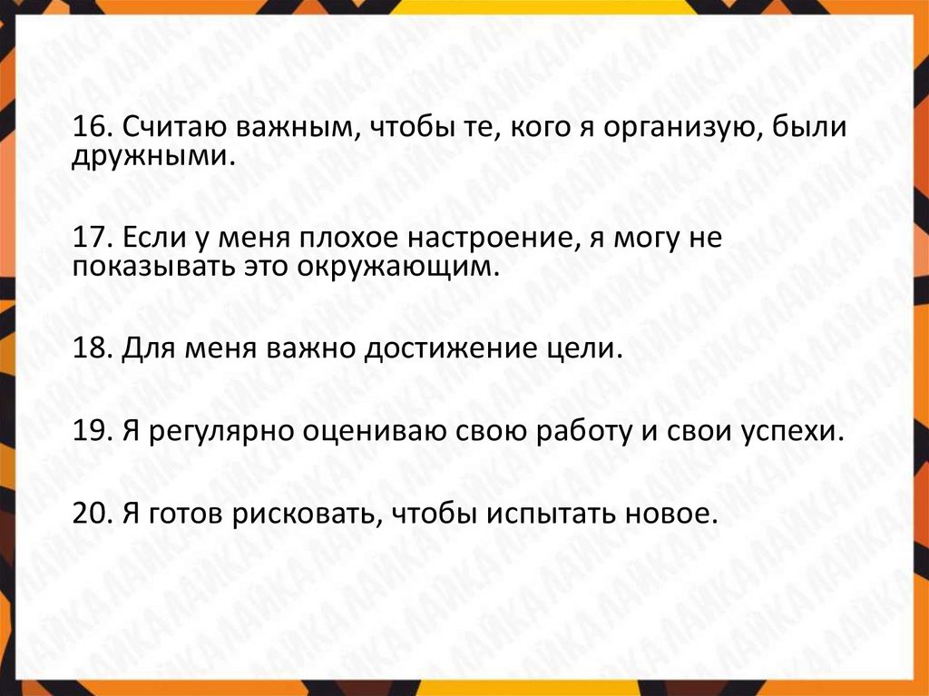 19. Я регулярно оцениваю свою работу и свои успехи.