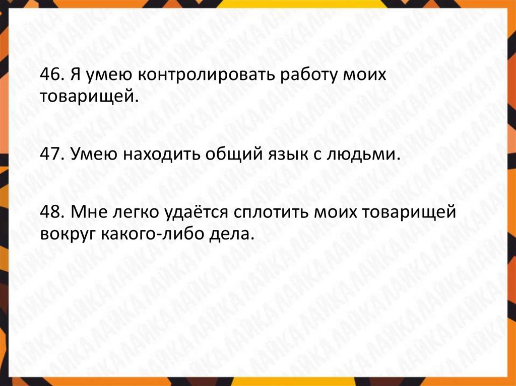 46. Я умею контролировать работу моихтоварищей.