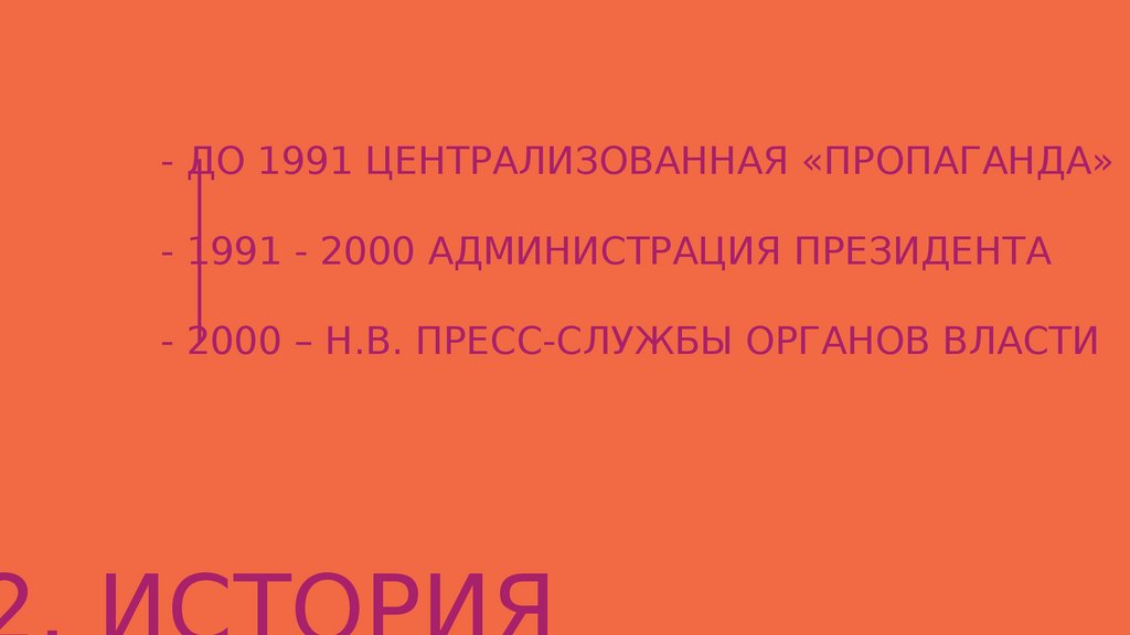 - ДО 1991 ЦЕНТРАЛИЗОВАННАЯ «ПРОПАГАНДА»- 1991 - 2000 АДМИНИСТРАЦИЯ ПРЕЗИДЕНТА