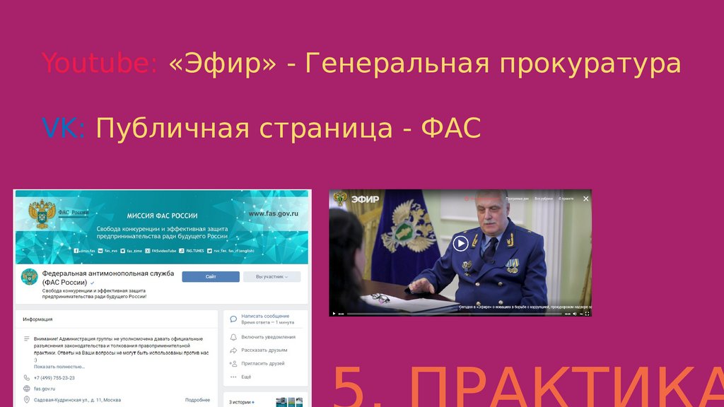 Youtube: «Эфир» - Генеральная прокуратураVK: Публичная страница - ФАС