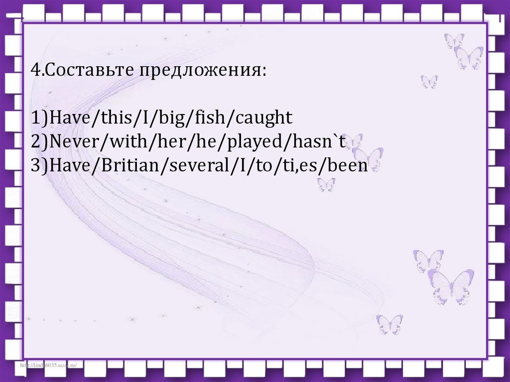 4.Составьте предложения:1)Have/this/I/big/fish/caught