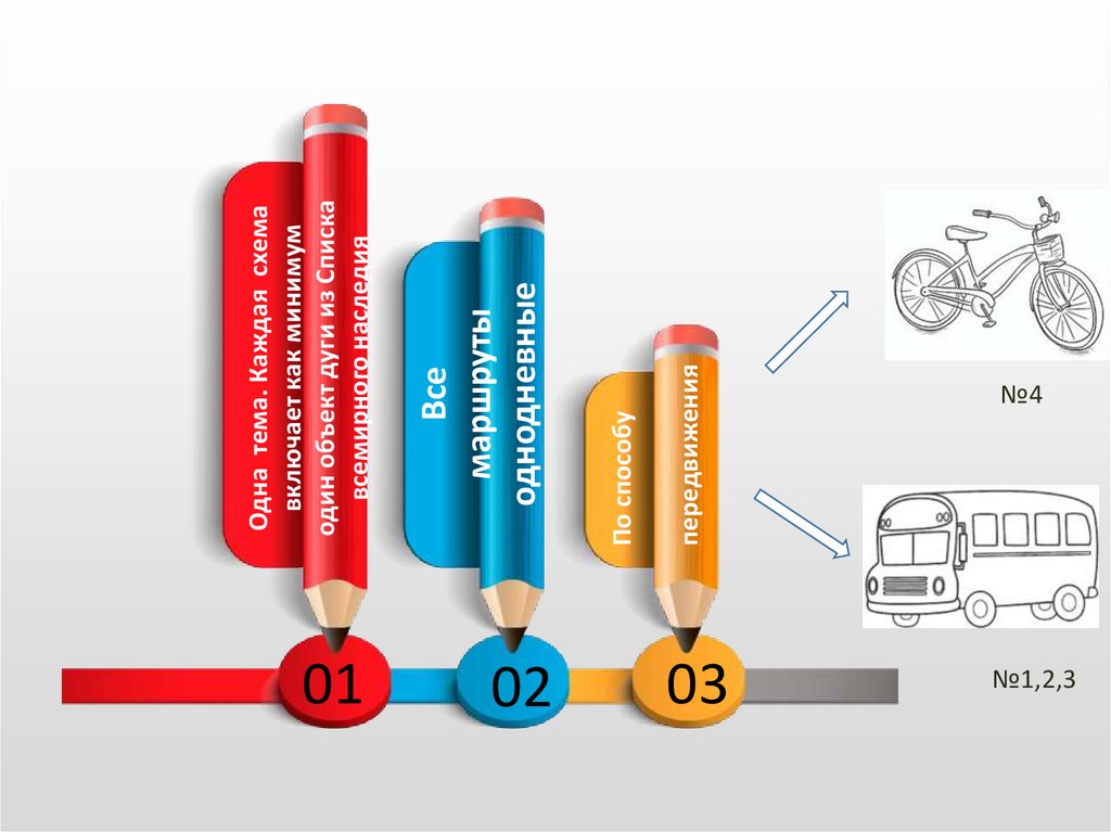 Все маршруты объединены одной темой. Каждая предложеннаясхема включает как минимум один объект дуги из Списка