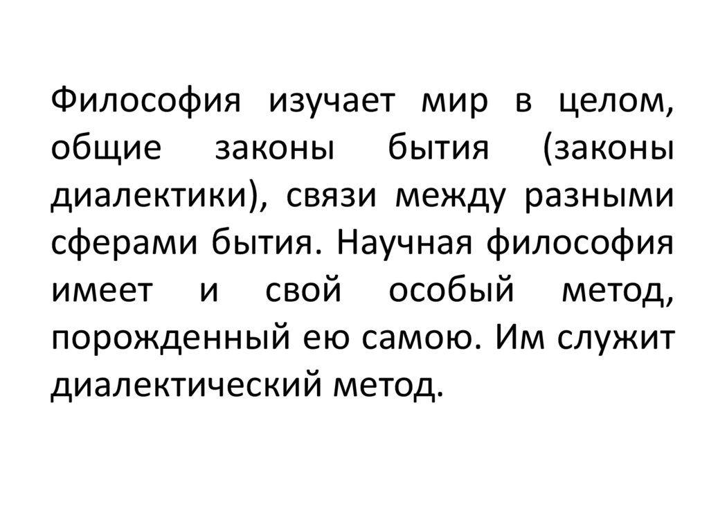 Философия изучает мир в целом,общие законы бытия (законы