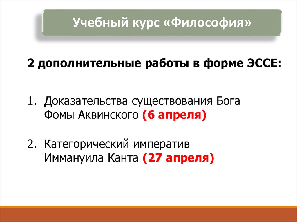 Учебный курс «Философия»2 дополнительные работы в форме ЭССЕ: