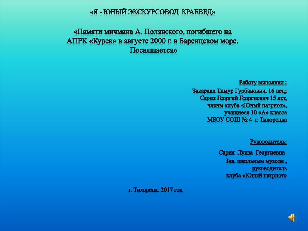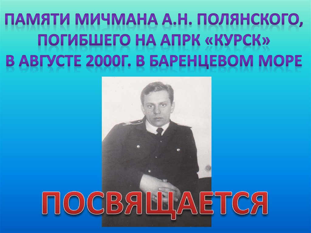 Посвящается памяти мичмана А. Полянского, погибшего на АПРК "Курск", в Баренцевом море
