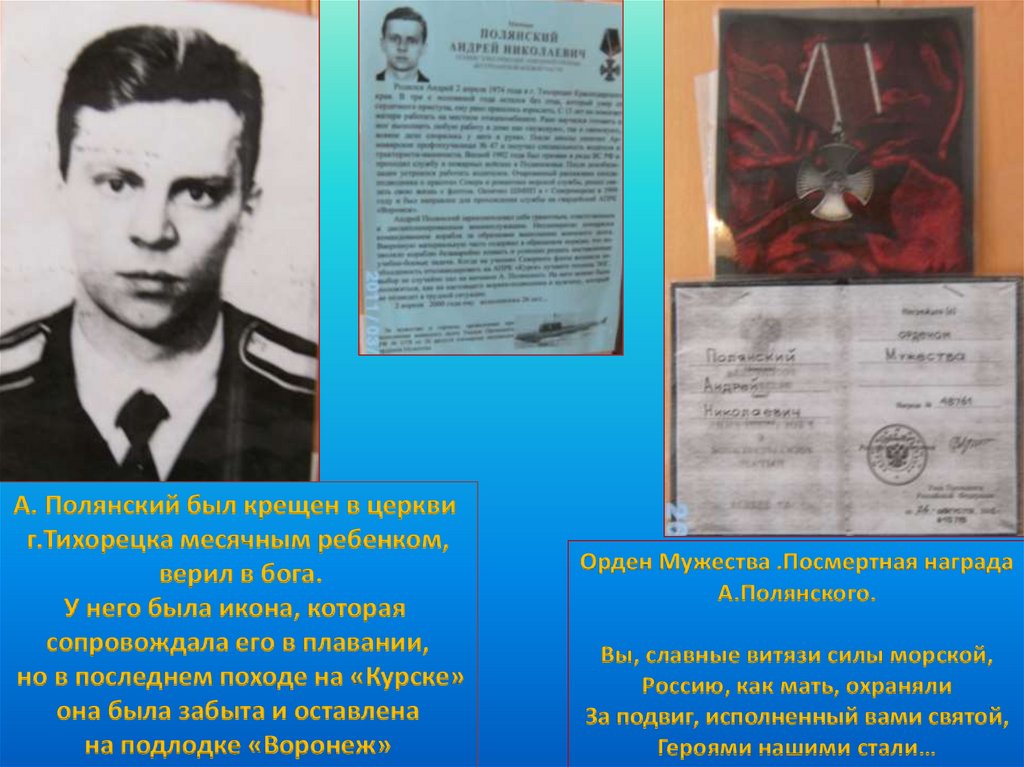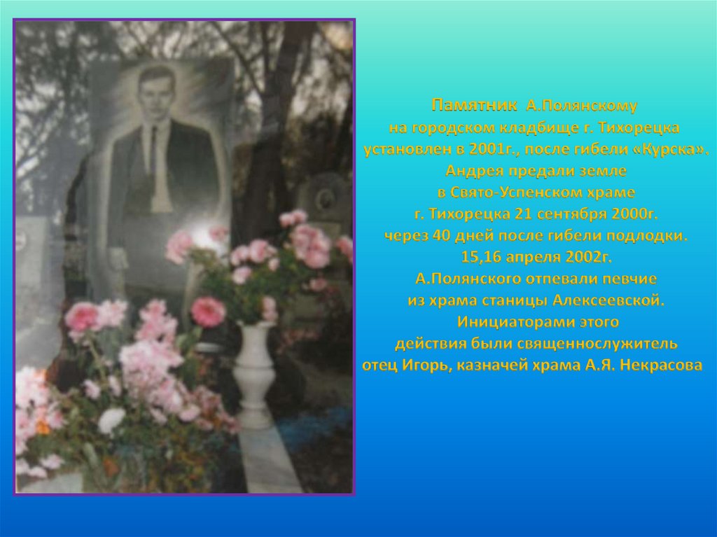 А. Полянский был крещен в церквиг.Тихорецка месячным ребенком,