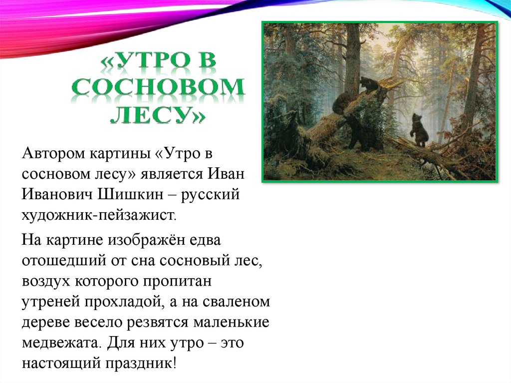 Автором картины «Утро всосновом лесу» является Иван