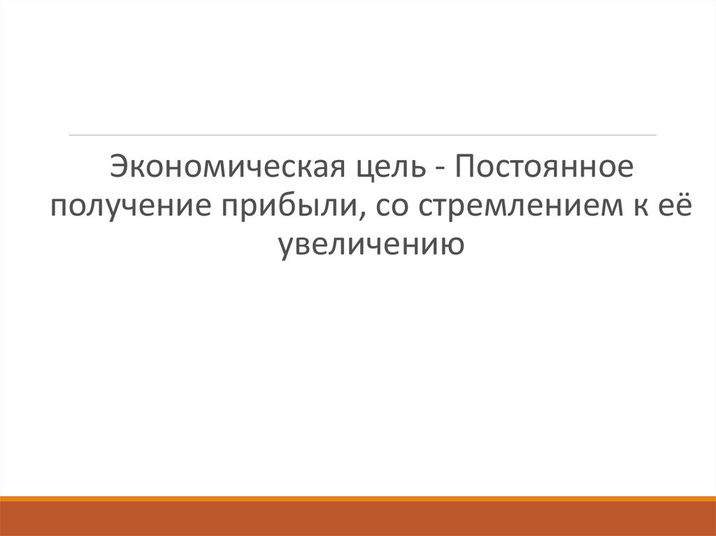 Экономическая цель - Постоянноеполучение прибыли, со стремлением к её
