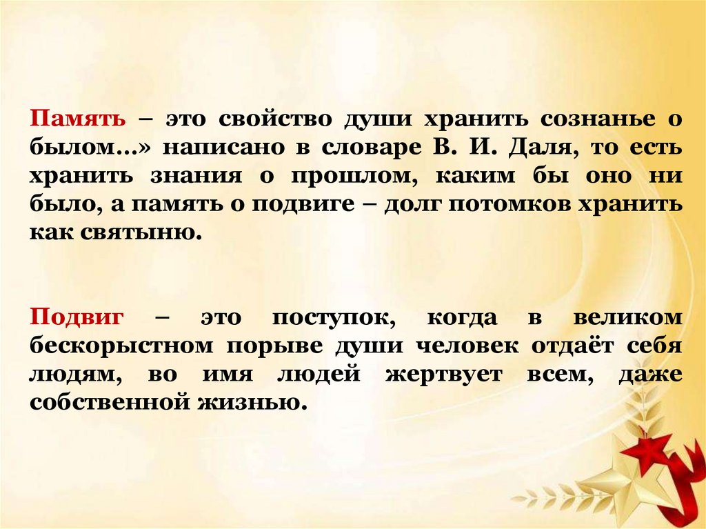 5. Есть память, которой не будет забвенья, И подвиг, которому нет конца