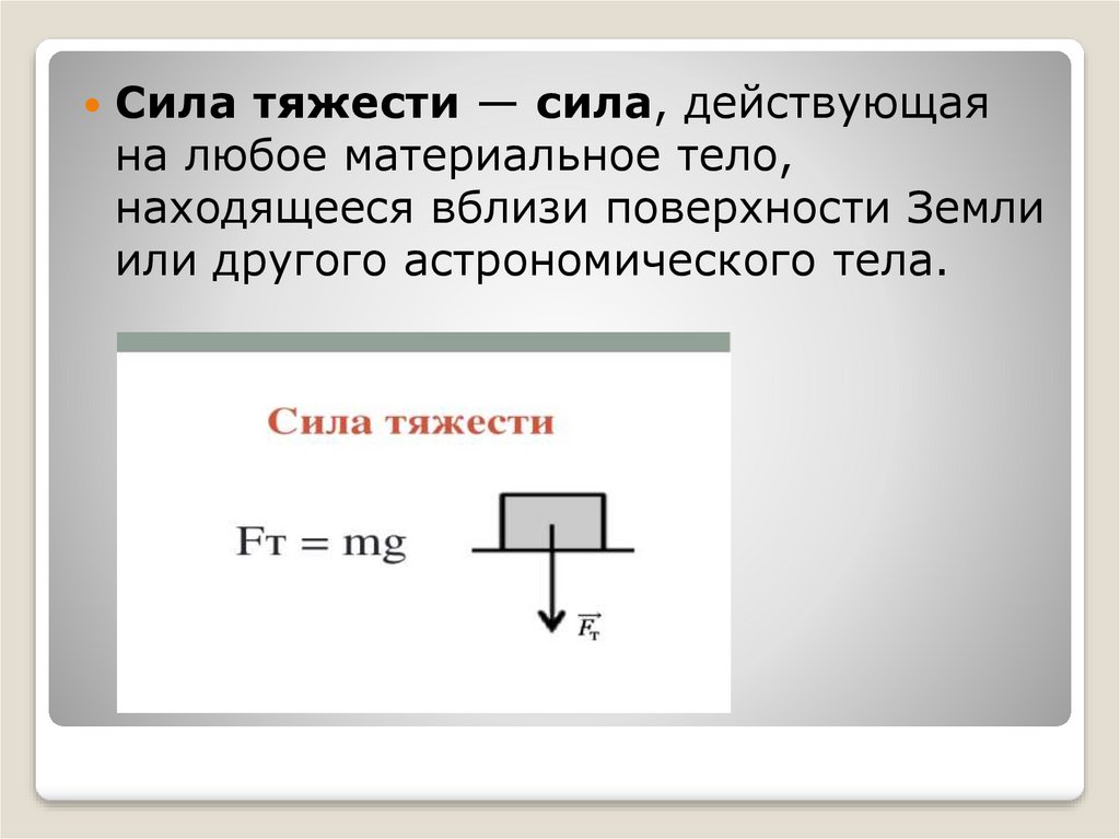Сила тяжести — сила, действующаяна любое материальное тело,