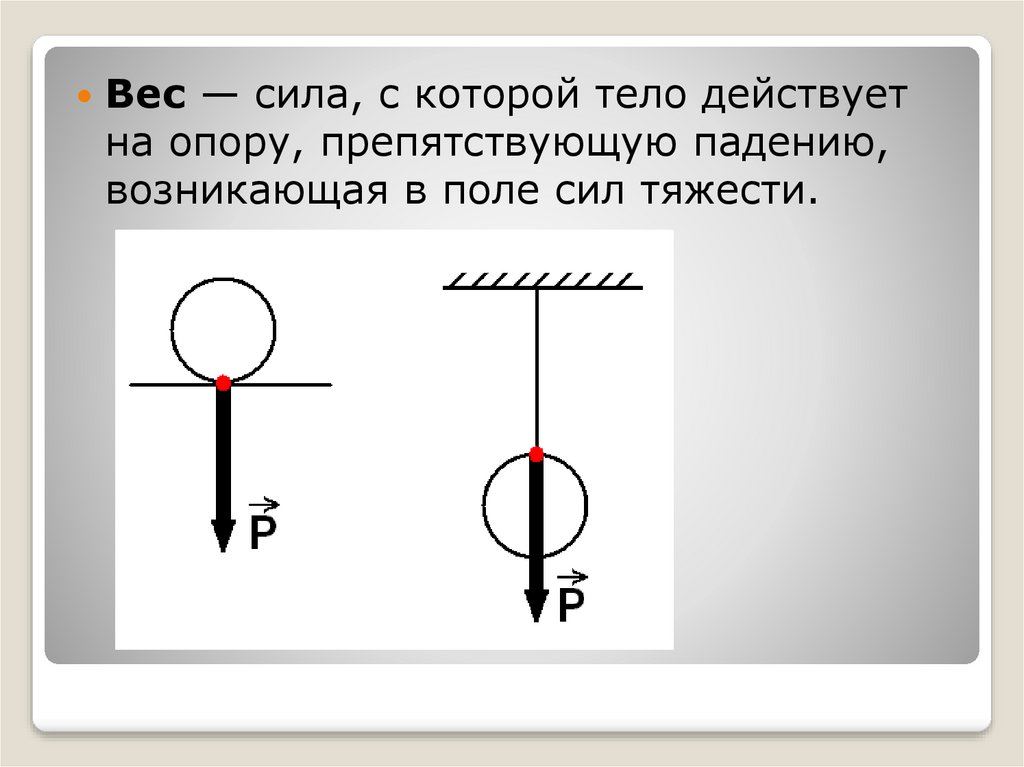 Вес — сила, с которой тело действуетна опору, препятствующую падению,
