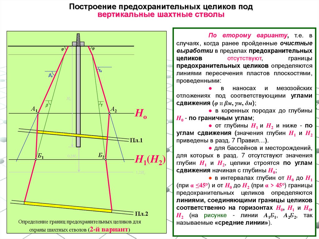 Построение предохранительных целиков подвертикальные шахтные стволы
