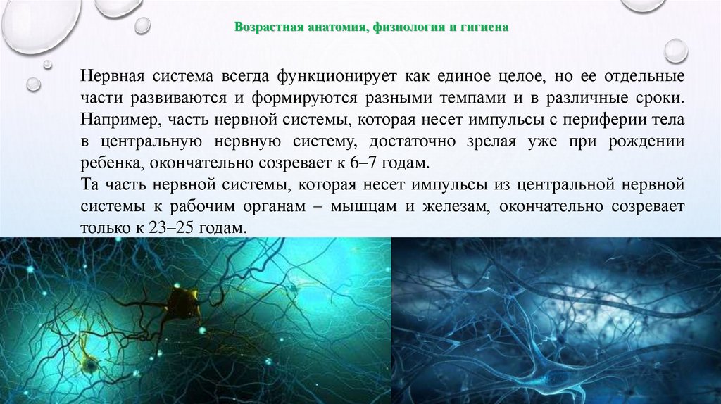 Возрастная анатомия, физиология и гигиенаНервная система всегда функционирует как единое целое, но ее отдельные