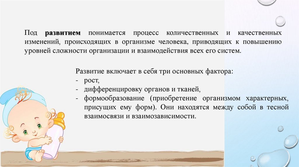 Рост и развитие человека, начинающиеся с момента оплодотворенияяйцеклетки, представляют собой непрерывный поступательный процесс,