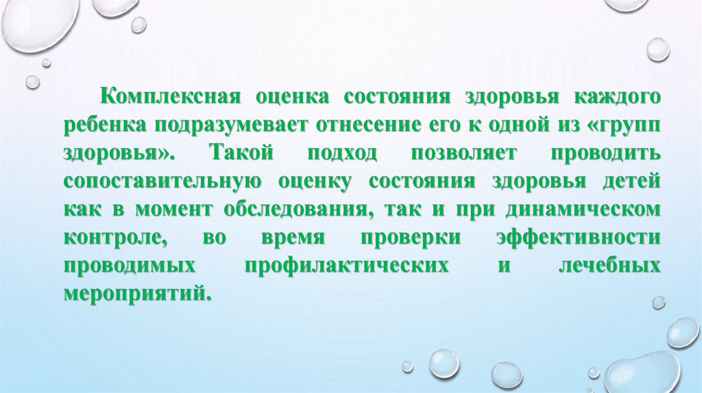 Комплексная оценка состояния здоровья каждогоребенка подразумевает отнесение его к одной из «групп