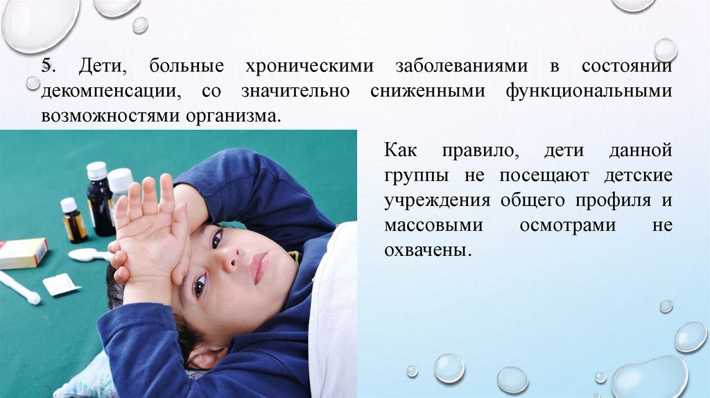 5. Дети, больные хроническими заболеваниями в состояниидекомпенсации, со значительно сниженными функциональными
